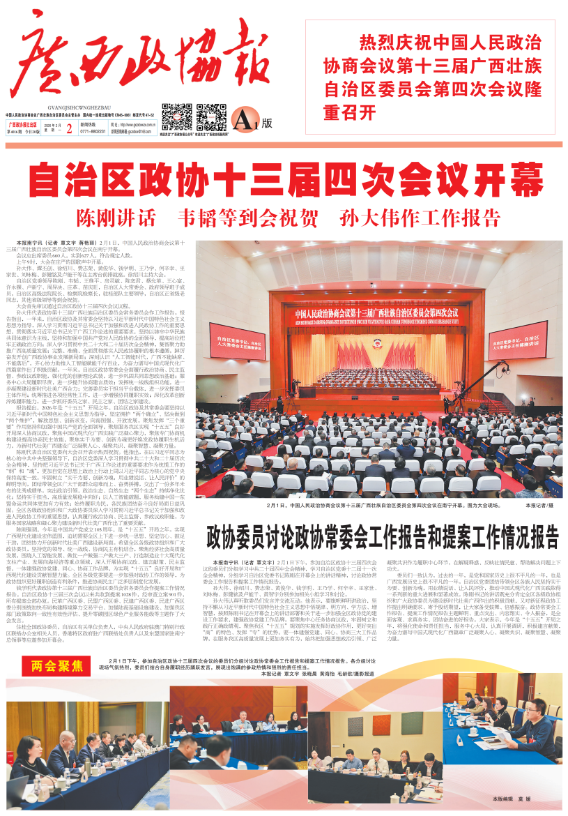 - 第 1 版: 要闻 自治区政协十三届四次会议开幕 陈刚讲话 韦韬等到会祝贺 孙大伟作工作报告