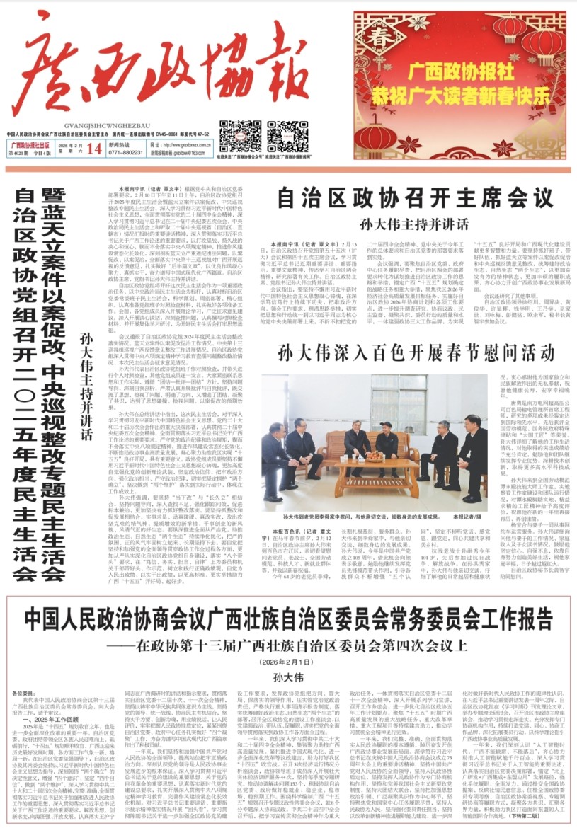 - 第 2 版: 要闻 中国人民政治协商会议广西壮族自治区委员会常务委员会工作报告