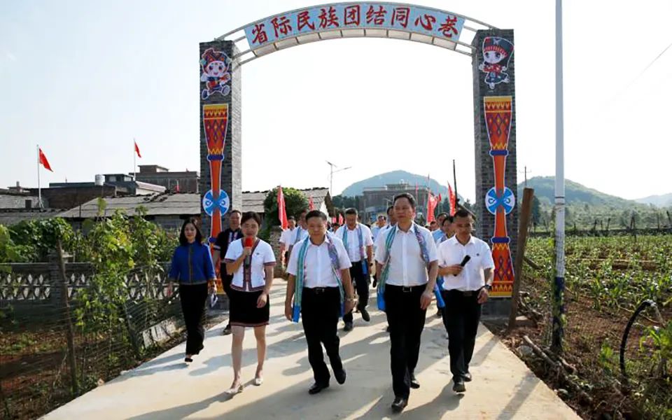在广西富川和湖南江华交界的湖广同心村,有一条长约150米的通村主干道一直不好走,成了村里的“烦心路”。由于涉及到土地纠纷问题,多年来,这条道路的硬化工作一直被搁置。夜访协商活动开展以来,富川、江华两县政协多次沟通协调,积极牵线搭桥,采用政协搭台、委员协商、村民沟通的方式方法,成功解决了湖广同心村的“烦心路”难题。以此为起点,两地政协借助铸牢中华民族共同体意识跨省际区域联动协商共建平台,加强携手共建,统筹各类财政资金320万元,深入开展建强一个省际民族团结同心联合党支部、打造一个省际民族团结同心广场、建设一条省际民族团结同心路、打造一间省际民族团结同心“石榴籽”调解室等“十个一”活动,打造出了“湘桂一家亲、浓浓手足情”铸牢中华民族共同体意识教育实践特色品牌。