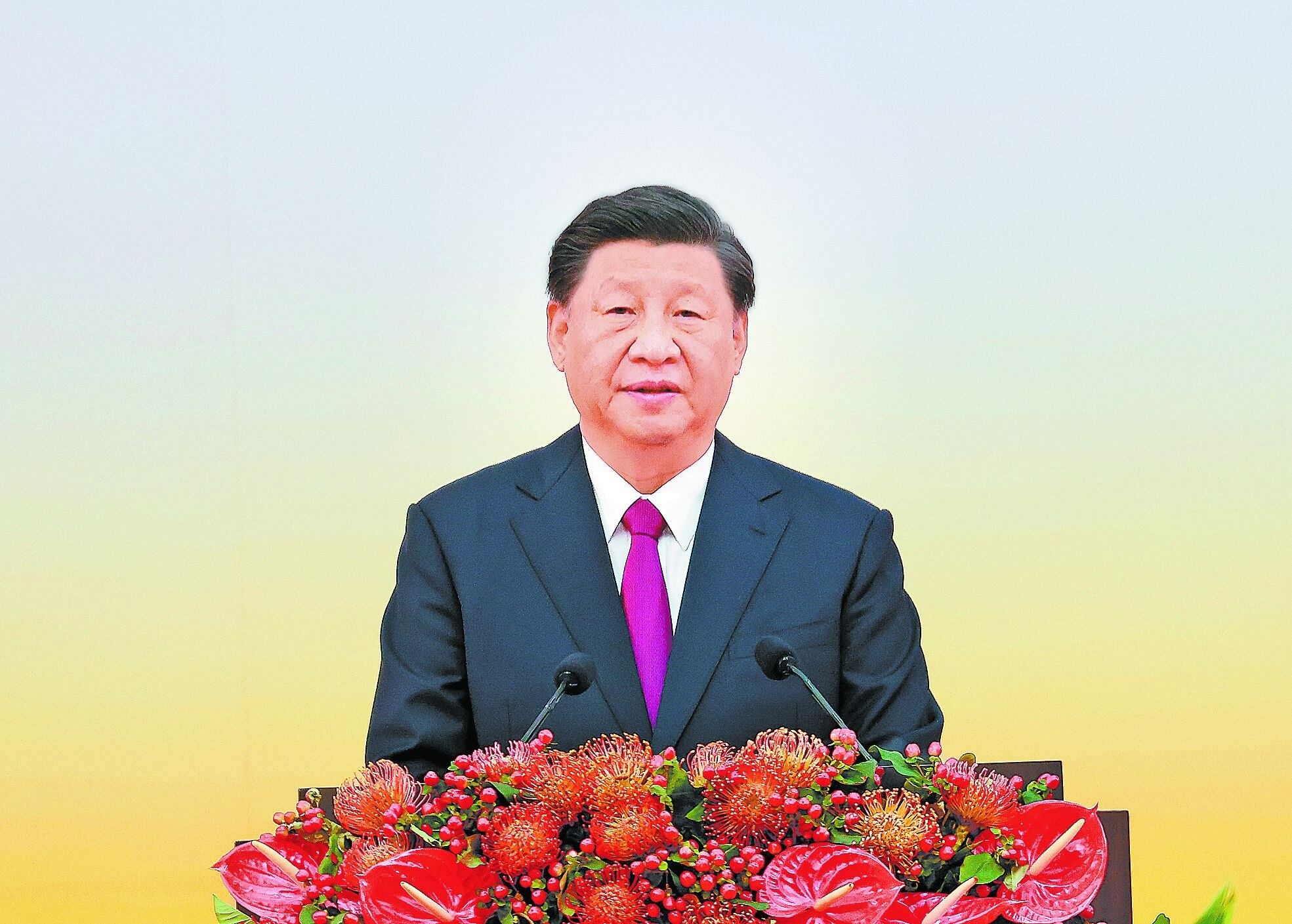 7月1日上午,庆祝香港回归祖国25周年大会暨香港特别行政区第六届政府就职典礼在香港会展中心隆重 举行。中共中央总书记、国家主席、中央军委主席习近平出席并发表重要讲话。 新华社记者 姚大伟/摄
