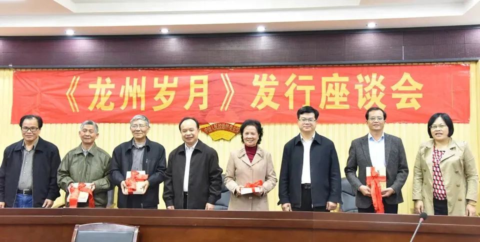 ▲近年来,龙州县政协围绕“龙州故事”主题先后收集整理出版《龙州岁月》系列文史书籍5本。图为《龙州岁月》文史书籍发行座谈会。