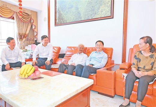10月4日,自治区党委书记刘宁到河池市,走访慰问全国民族团结进步模范个人谭三川。 广西云-广西日报记者黄克/摄