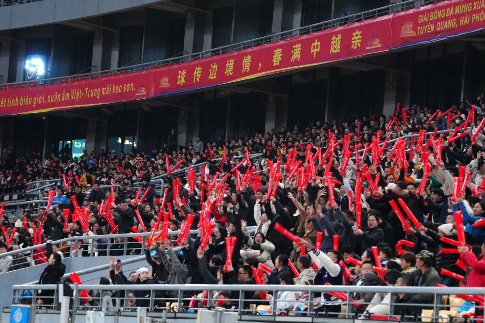 中国广西队与越南广宁省队在收官之战展开对决。广西队敢打敢拼、配合默契。广宁队战术娴熟、攻防有序。最终广西队以4:1获胜。两队以足球为纽带共叙新春情谊,为这场体育交流活动画上圆满句号。