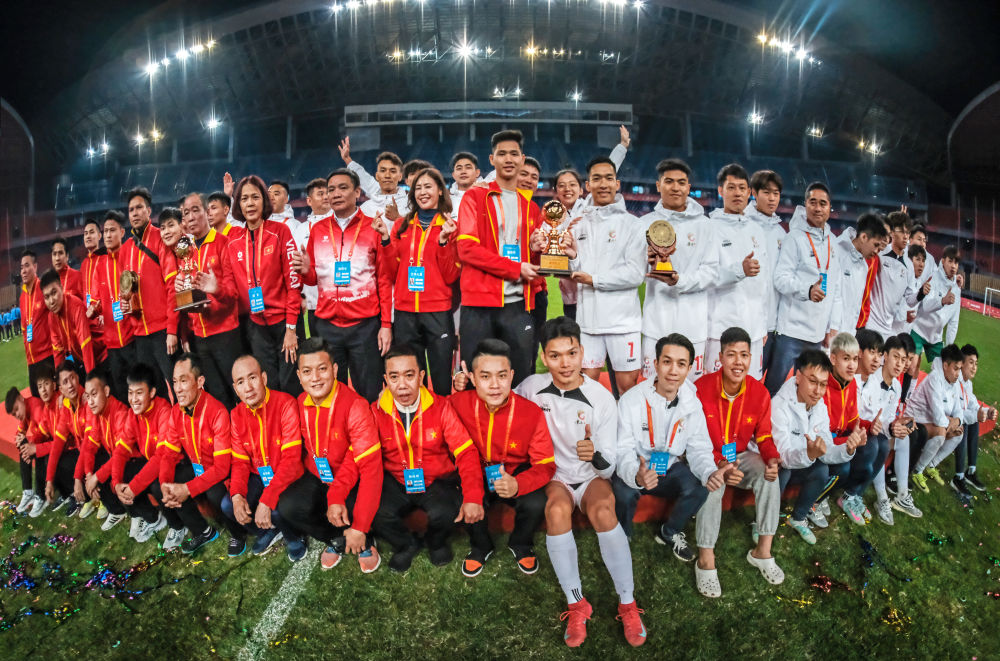 越南海防市队与中国广西队赛后合影。赛事主办方供图