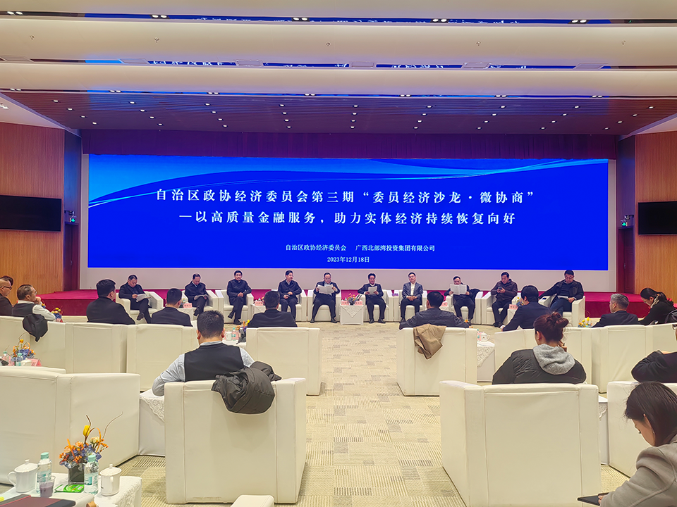 12月18日,自治区政协经济委员会在广西北部湾投资集团有限公司举办第三期“委员经济沙龙·微协商”活动,自治区政协委员、有关单位负责人、部分银行代表及特邀专家齐聚一堂,围绕“以高质量金融服务,助力实体经济持续恢复向好”主题,谈体会、建真言。