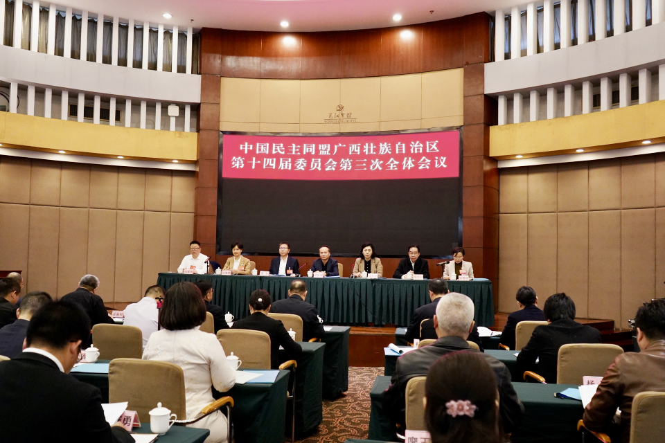 1月20日,民盟广西区第十四届委员会第三次全体会议在南宁召开。会议传达学习习近平总书记视察广西重要讲话精神,民盟十三届二中全会精神,中共广西十二届七次全会精神、中央经济工作会议及全区经济工作会议精神;听取并审议通过民盟广西区第十四届常务委员会工作报告;审议通过民盟广西区第十四届委员会第三次全体会议决议等。民盟中央常委、民盟广西区委主委邓长球出席并代表民盟广西区第十四届常务委会作工作报告。