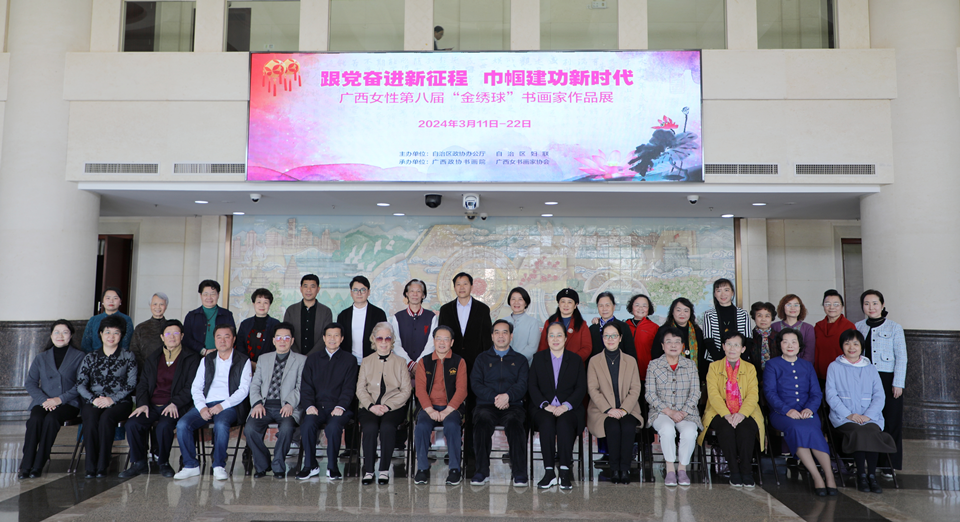部分参展女书画家、书画爱好者,主办承办单位干部职工参观展览,广西女书画家们表示,新时代新征程,她们将会以实际行动践行习近平文化思想,不断增强中华优秀传统文化传承、新时代文化创新的历史自觉和责任担当,为讲好中国故事、广西故事、广西妇女故事作出新的贡献。据悉,广西女性“金绣球”书画作品展已连续举办了七届,共展出作品800多幅,为广西女书画家搭建了良好的交流学习平台,此次展览将持续到3月22日。□ 蒋艳丽
